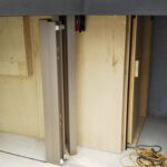 扉のフレームには扉を閉めた際に、フレームの位置でしっかり止めることと、クリアランスから音がもれないようにする為、戸当りをフレームに設置します。