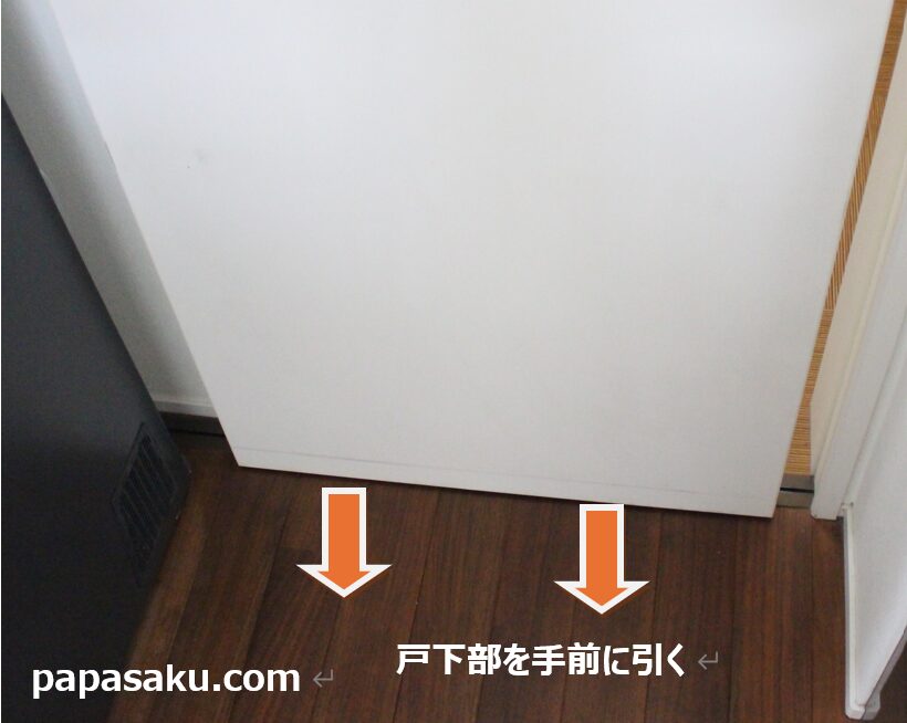・引き戸の下部分を手前に引いて引き戸全体を取り外します。