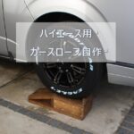車体の固定は確実に行いましょう。ハイエースの車重は2t近くありますので、万が一倒れたりすると大変ですよね。はじめに車体を平らな場所に移動させましょう。傾斜のある場所ではジャッキアップした時に車体が動く可能性がありますので。