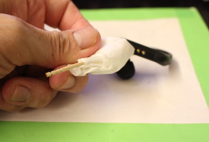 - 爪楊枝を使って端子部分を清拭すれば完了です。